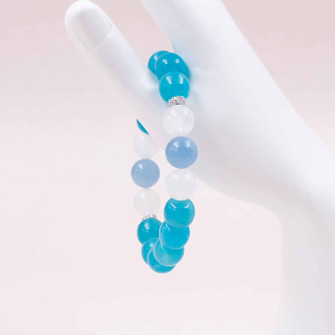 She flows like water, feels like moonlight, and stands with quiet strength. Lunabliss Flow is crafted for women who embrace emotional depth and graceful growth. Amazonite lays the foundation of calm—soothing anxiety and restoring emotional balance. Moonstone nurtures the soul, heightening intuition and inner clarity. Aquamarine adds courage and clarity, gently amplifying your presence and energy. Together, they create a harmonious blend of serenity, sensitivity, and strength. Wear it as a reminder: your emotions are sacred, your softness is powerful, and your journey is beautifully your own.