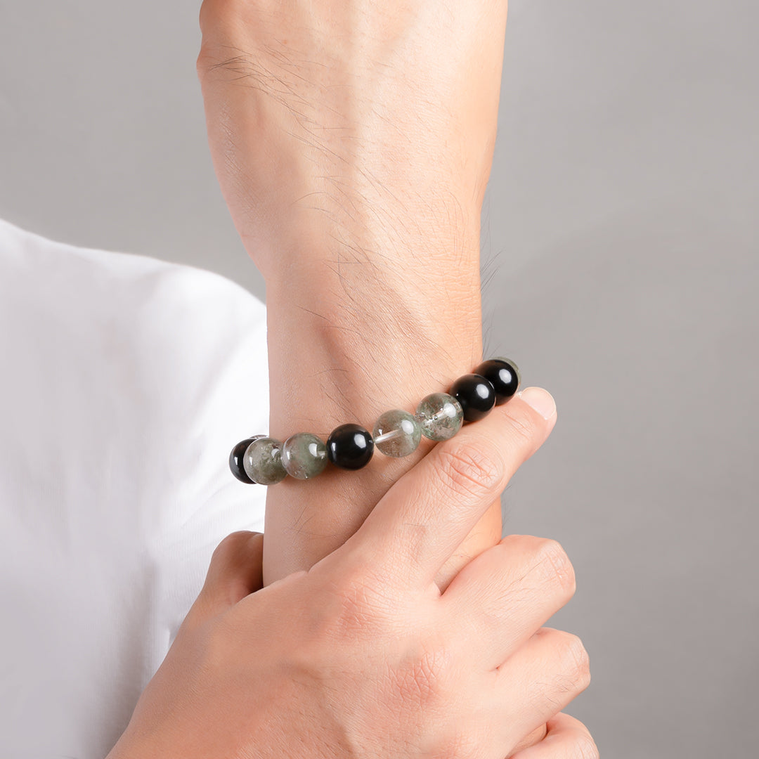 He stands firm in silence, and grows wealth in clarity. ShadowBloom Quartz is crafted for those who navigate pressure with poise and build success with intention. Black Agate shields against external negativity and sharpens focus—creating a stable inner sanctuary. Green Phantom Quartz draws in positive financial energy and supports strategic resource alignment. Together, they form a powerful duo: one grounds your spirit, the other elevates your fortune. Wear it as a reminder: your calm is your strength, your clarity is your magnet, and your path is protected.